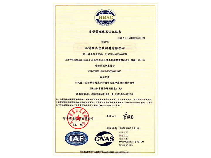 企業資質鹽城市君雁包裝科技有限公司,始創(chuàng)于2021年,公司面積20000平方米。公司位于中國鹽城大豐區南陽鎮祥西村三組,是一家集研發(fā)、生產、銷售為一體的包裝材料企業,產品涉及:外包裝紙箱,防水紙箱,涂蠟紙箱,浸蠟紙箱,冷柜紙箱,木包裝箱,免熏蒸木包裝箱,木托盤,EPE珍珠棉,珍珠棉袋,EVA板材,EVA大板,包裝海綿等包裝材料。包裝設計制造符合API、ANSI、ASTM、NACE、ISO、EN、BS、DIN、MSS SP等國際標準的要求,在鹽城以及周邊城市的市場上有良好的評價。公司擁有先進的生產設備,嚴格的管理制度和高素質的人才團隊,保證了高質量的產品和良好的服務,同時我司還可以根據客戶特殊工況需求,提供全套包裝技術解決方案。